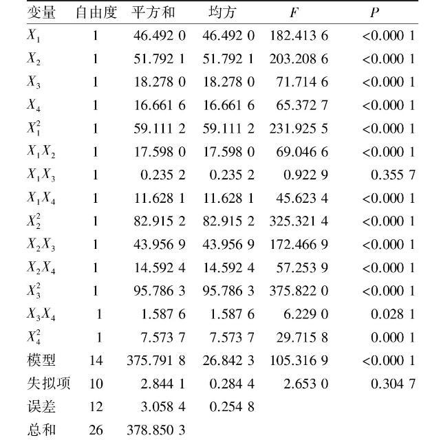 影響因素之間的交互作用除X1X3影響不顯著、X3X4影響顯著外,其余交互項影響極顯著。