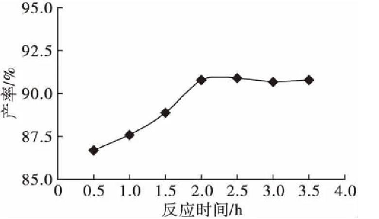 由圖3可以看出,隨著反應溫度逐步升高產物產率也逐步增大,在35℃時產物產率達到最大值,之后反應溫度再升高產物產率逐步下降。因此,選擇反應溫度30~40℃進行優化試驗。