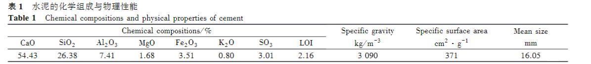表1水泥的化學(xué)組成與物理性能