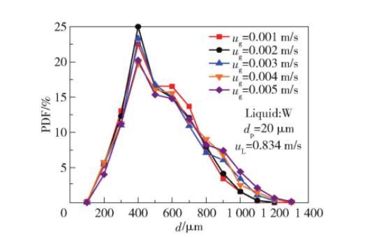 表面張力變化不僅影響平均尺寸,還深刻改變了氣泡尺寸分布形態(圖2)。隨著σ降低: